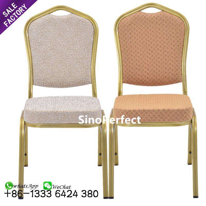 เก้าอี้จัดเลี้ยงหรูหราแบบซ้อนได้ โครงเหล็กสีทอง สำหรับห้องโถง ล็อบบี้ โรงแรม งานแต่งงาน ราคาประหยัด เก้าอี้วีไอพีสำหรับแขก