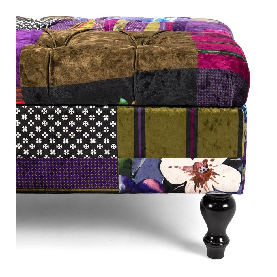 ม้านั่งออตโตมันมีกระดุมผ้าปะหลายสีสำหรับคอลเลกชั่นสไตล์วินเทจเฟอร์นิเจอร์หรูหราพร้อมขาไม้