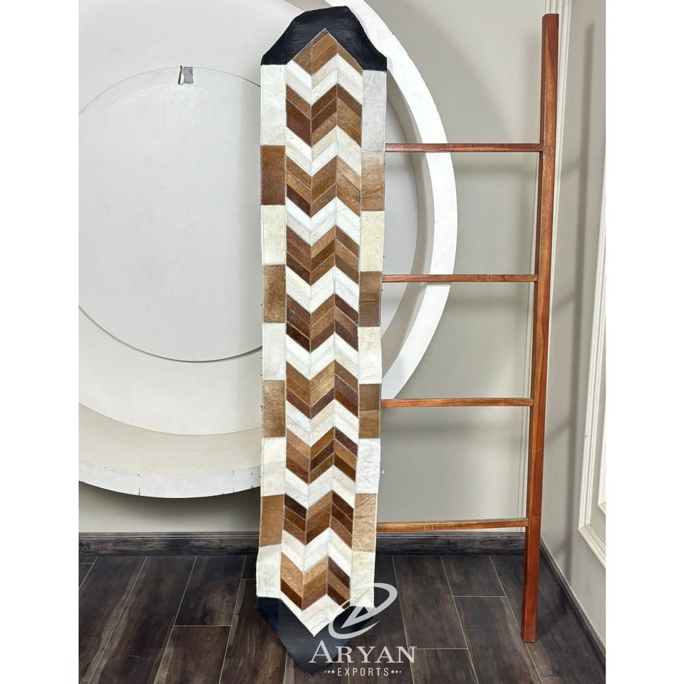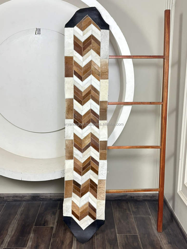 ผ้าปูโต๊ะหนังวัวแท้ลายเชฟรอน งานแฮนด์เมด ตกแต่งด้วยขนสัตว์ สำหรับโต๊ะอาหาร โต๊ะกาแฟ โต๊ะคอนโซล ของตกแต่งบ้าน