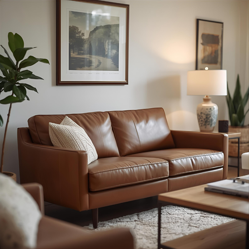 Description:Modern Leather 3-Seater Sofa Minimalist Style with Wooden Legs