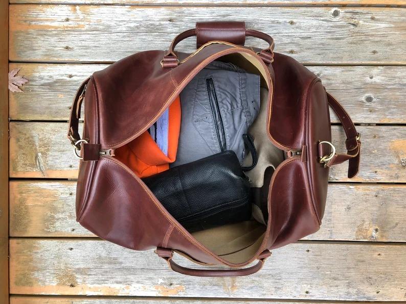 Luxury Genuine Leather Handmade Lightweight Portable Vintage Weekender Duffle Large Capacity Travel Bag for Influencers
