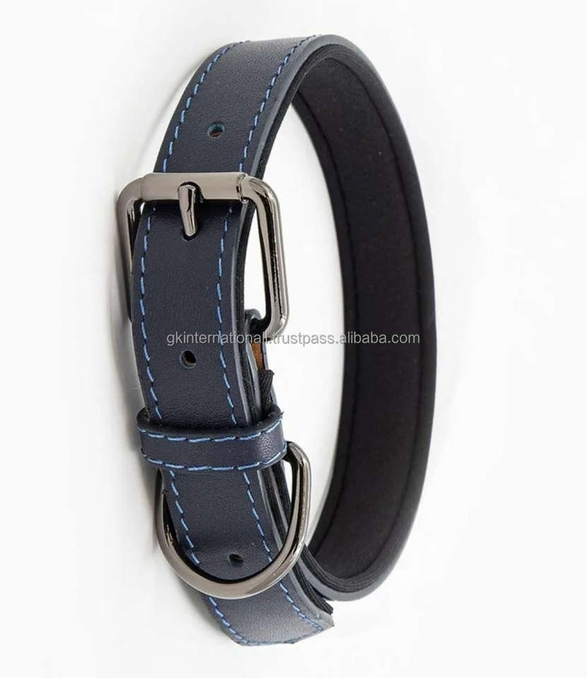 ปลอกคอสุนัขบุนวมหนังแท้หรูหราปลอกคอสัตว์เลี้ยงทำจากทองเหลืองทนทานต่องานหนัก