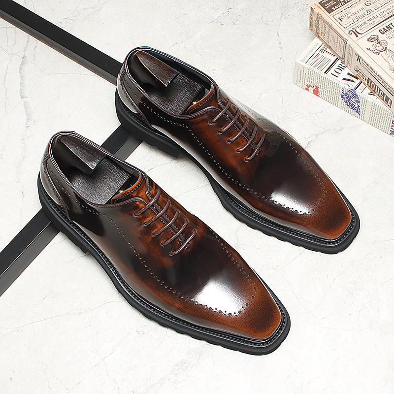 รองเท้าบูทหนังแท้สุดหรูสำหรับฤดูใบไม้ร่วงและฤดูหนาว รองเท้าบูทหุ้มข้อผู้ชายแบบผูกเชือก พื้นรองเท้าทำจากยาง ระบายอากาศได้ดี