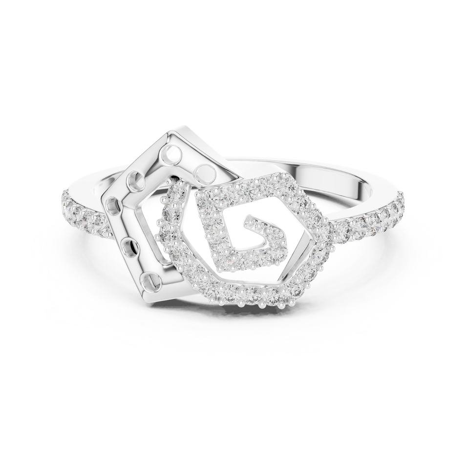 แหวนเพชรทรงเรขาคณิตสุดหรูสำหรับผู้หญิง | ดีไซน์หัวเข็มขัดทันสมัย | การฝังเพชรแบบไมโครเพฟ | แหวนมอสซาไนต์ | โลหะผสมเงินสเตอร์ลิง