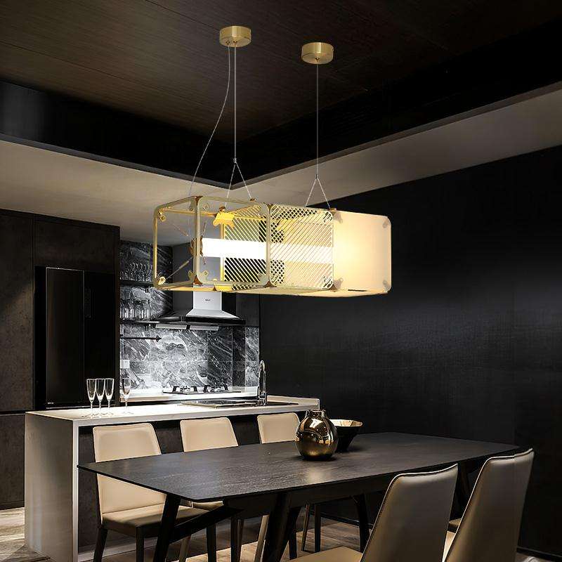 Luxury Geometric Pendant Light with Gold Metal Frame and Acrylic Diffuser for Dining and Commercial Interiors for Hotels