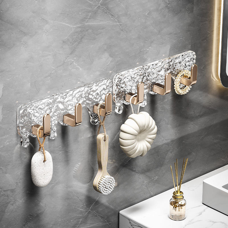 ตะขอแขวนติดผนังลายธารน้ำแข็งสุดหรู 6 ชิ้น แบบไม่ต้องเจาะผนัง ผิวขัดเงา สำหรับห้องน้ำ