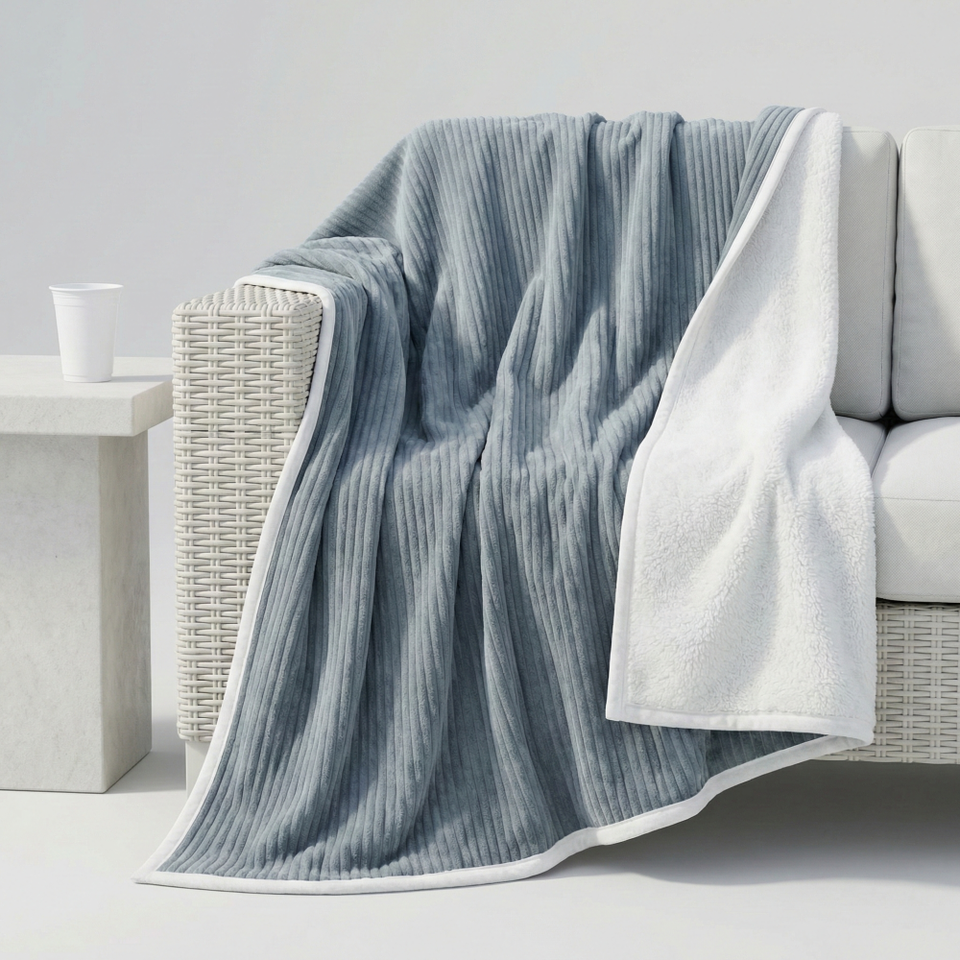 ผ้าห่มโรงแรมกลางแจ้งสุดหรูสำหรับแกลมปิ้ง | ผ้าห่มขนแกะแบบมีลายริบบิ้น ผสมผสานกับผ้ากำมะหยี่เนื้อนุ่ม อุ่นสบาย เหมาะสำหรับกิจกรรมแคมป์ไฟ | ผู้จัดจำหน่ายสินค้าขายส่งแบบกำหนดเองจำนวนมาก