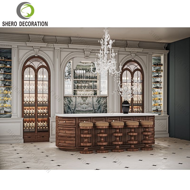 ตู้โชว์ไวน์ทำจากไม้เนื้อแข็งตู้โชว์ไวน์ทำจากไม้วิสกี้โลหะแบบกำหนดเองหรูหรา