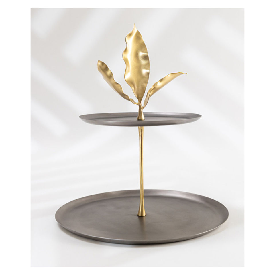 ที่วางเค้กโลหะรูปนกสีทองสุดหรูและมี2ชั้นถาดเสิร์ฟขนมหวานและจานผลไม้สำหรับตกแต่งบ้านหรูหรา