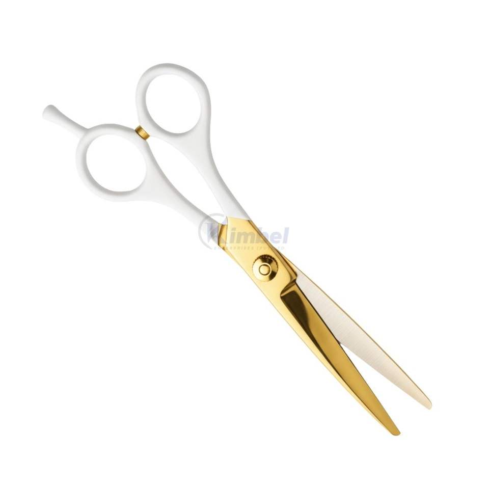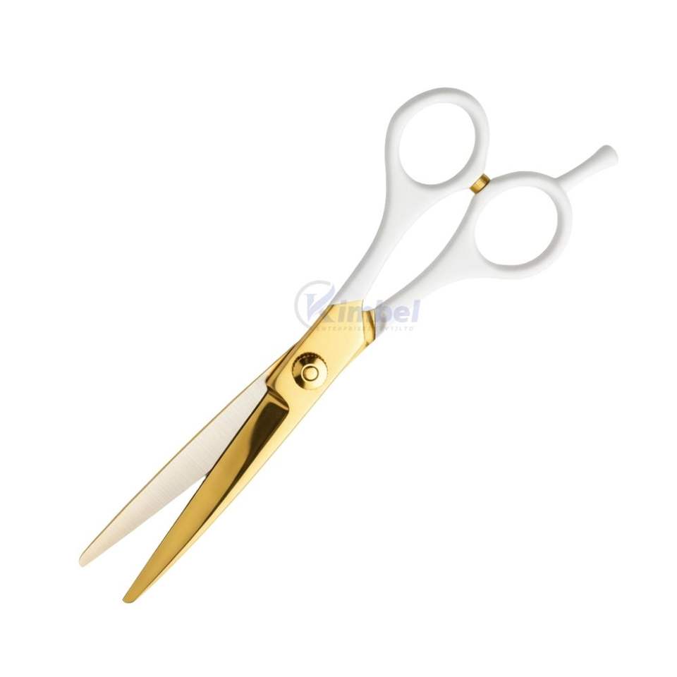 กรรไกรตัดผมสแตนเลสด้ามใบมีดสีทองแบบมืออาชีพสำหรับช่างตัดผม