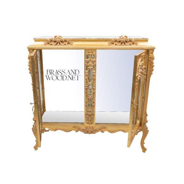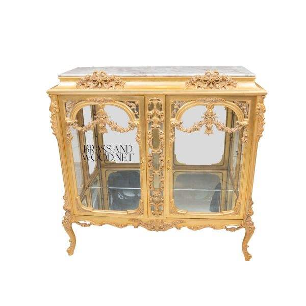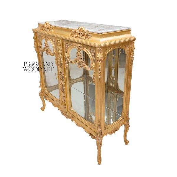 ตู้ vitrine แกะสลักสีทองหรูหราด้านบนหินอ่อน