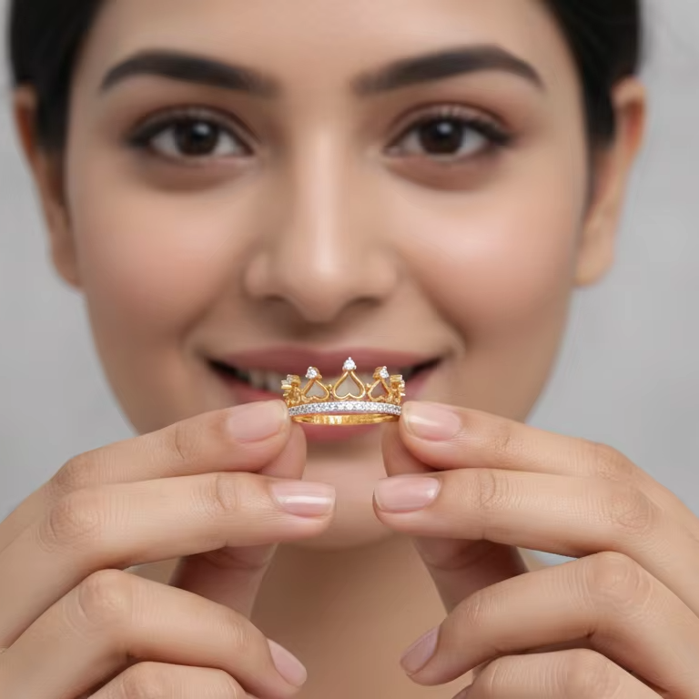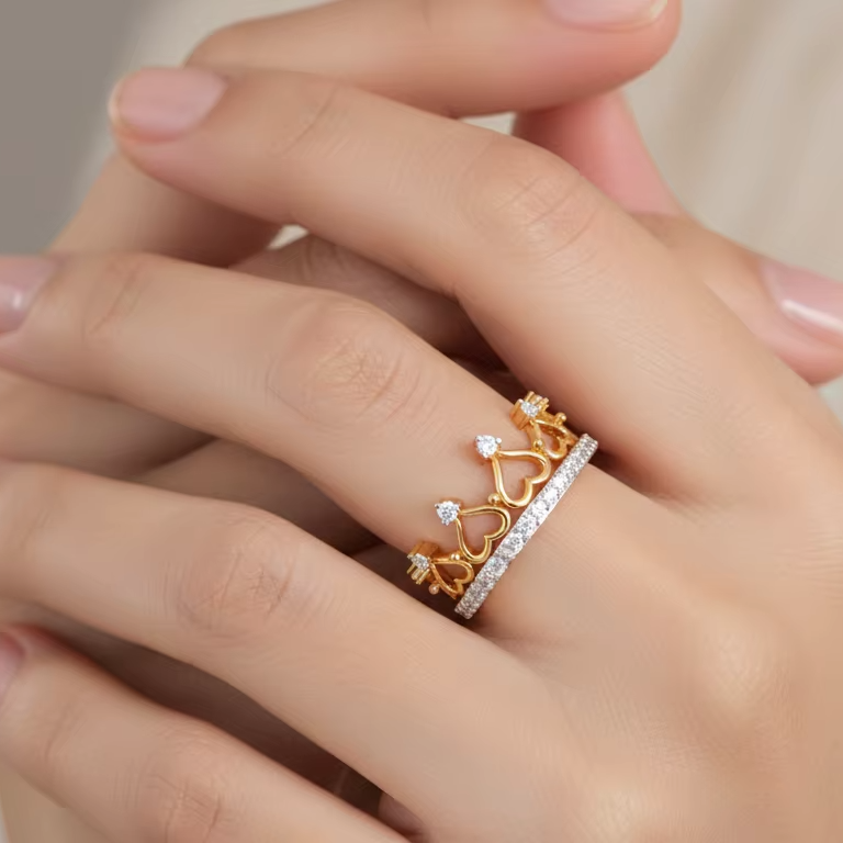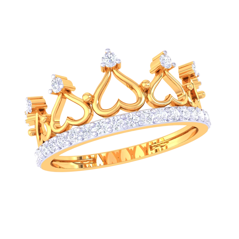 แหวนมงกุฎทองหรูหราสำหรับผู้หญิง ประดับหัวใจระยิบระยับ มงกุฎเจ้าหญิง ของขวัญเครื่องประดับสำหรับงานแต่งงานและสัญญา