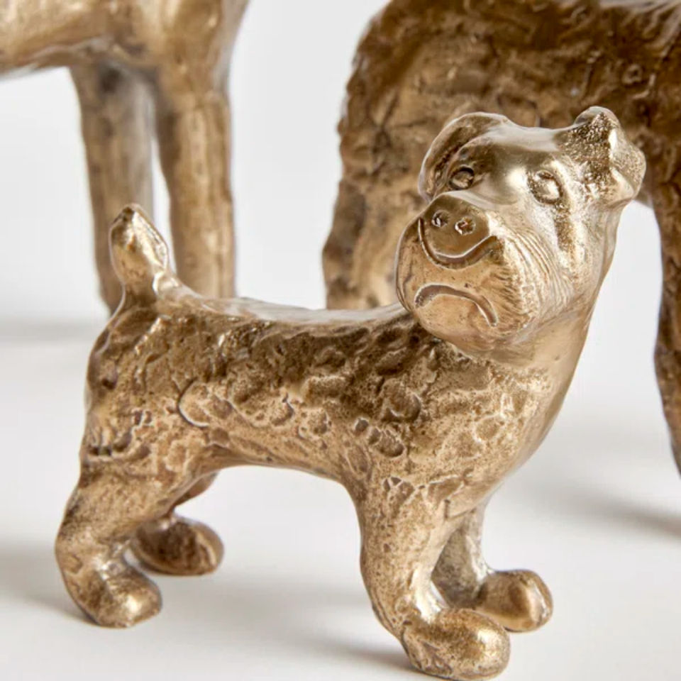 ชุดรูปปั้นสุนัขทองคำหรูหรา 3 ชิ้น งานโลหะตกแต่งรูปสัตว์ สำหรับตกแต่งบ้าน ห้องนั่งเล่น สำนักงาน ของตกแต่งทำมือ