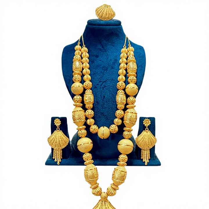 ชุดสร้อยคอยาวประดับลูกปัดสองชั้นเคลือบทองหรูหรา พร้อมจี้เปลือกหอย ต่างหูและแหวนเข้าชุด 63132