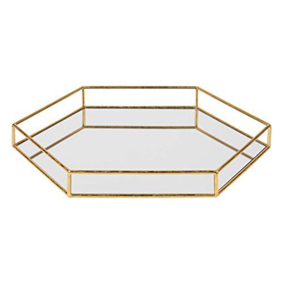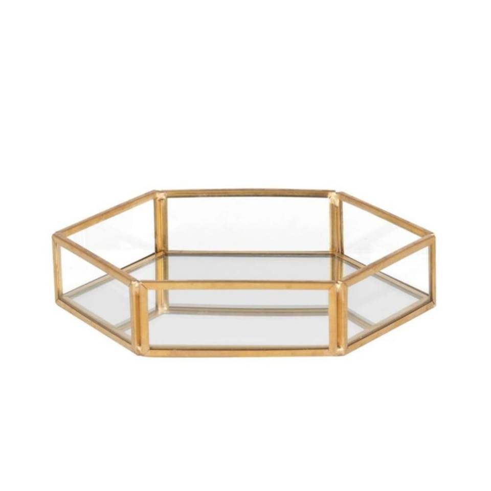 Luxury Gold Glass Mirrored Decorative Tray Set Octagon Jewelry Cosmetic Organizer Perfume Plate Wedding Centerpiece Home Decor