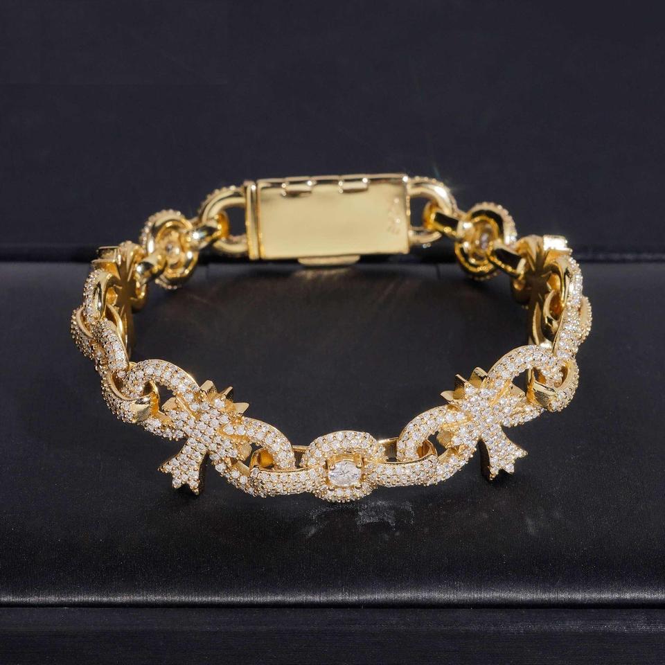 สร้อยข้อมือคิวบันลิงค์ประดับเพชรโมอิสซาไนต์สีทองหรูหรา VVS1 สไตล์ฮิปฮอป สำหรับผู้ชาย