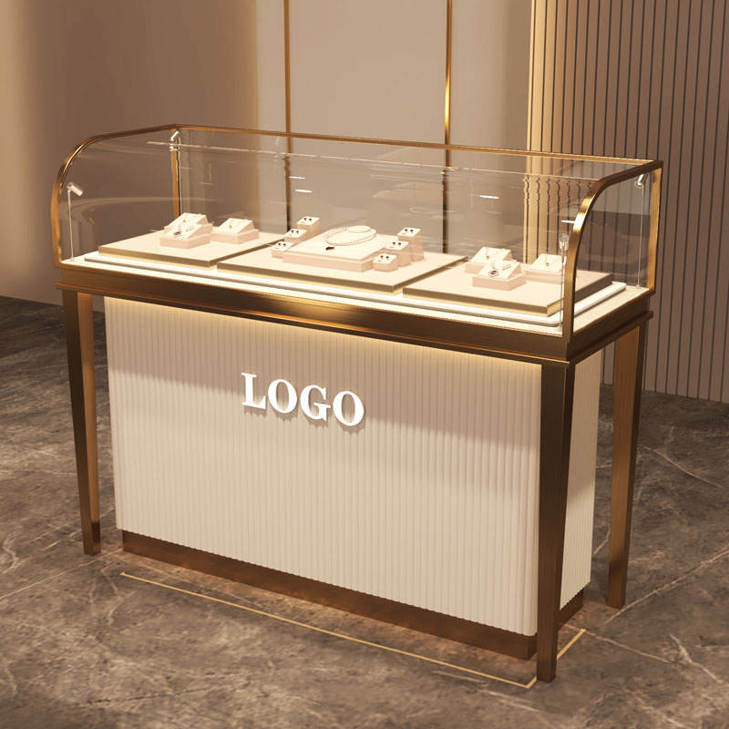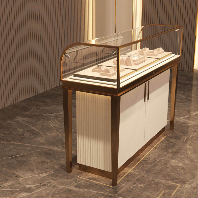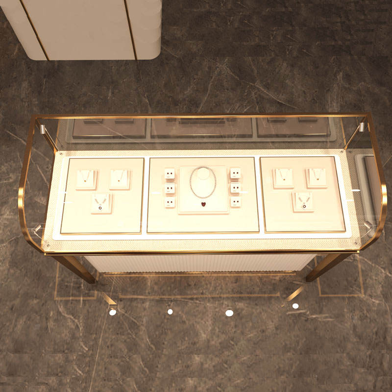 Luxury Gold Jewelry Display Case Jewelry Table Display Metal Material Designed Jewellery Shop Counter Display