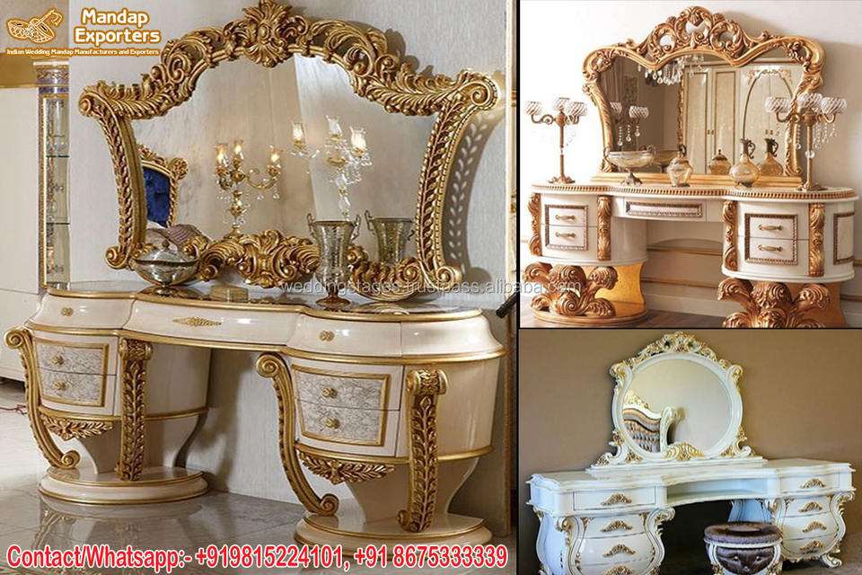 Luxury Gold Leaf Dual Carved Console Table SetProduct name