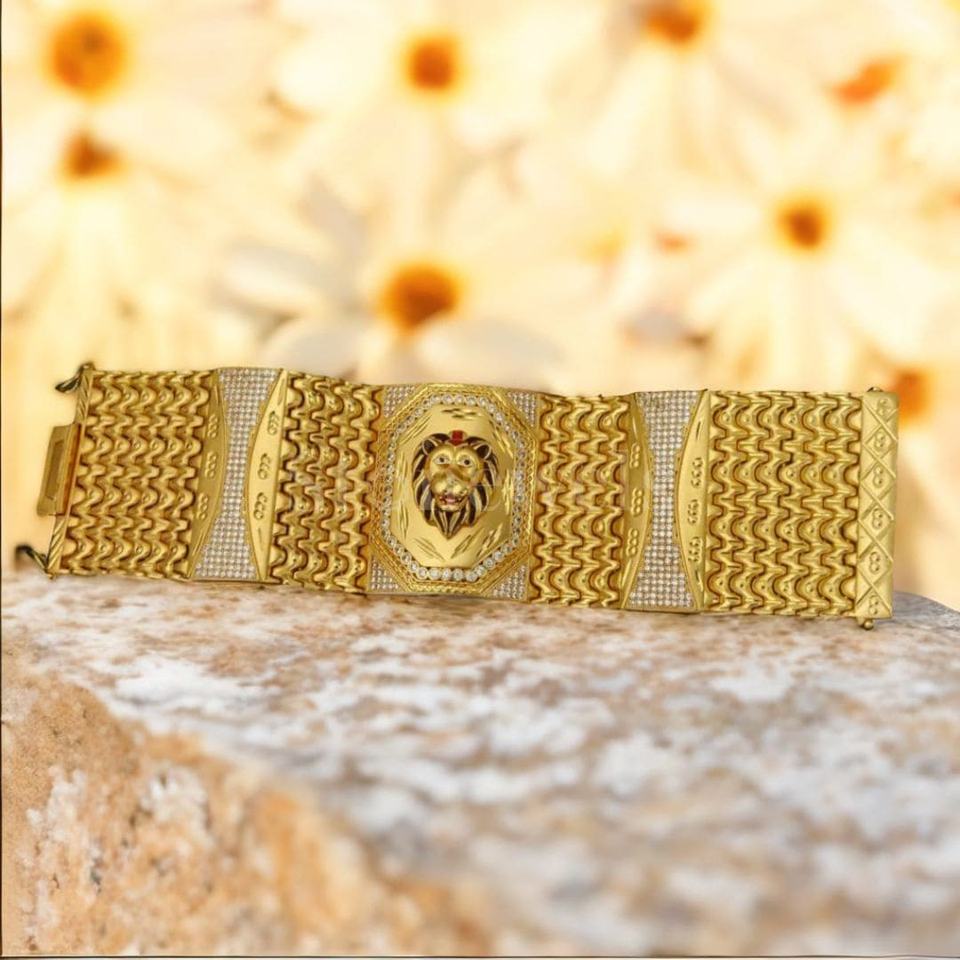สร้อยข้อมือเพชรที่ทันสมัยหรูหราสำหรับชายและหญิงพร้อมดีไซน์หัวสิงโตสีทอง