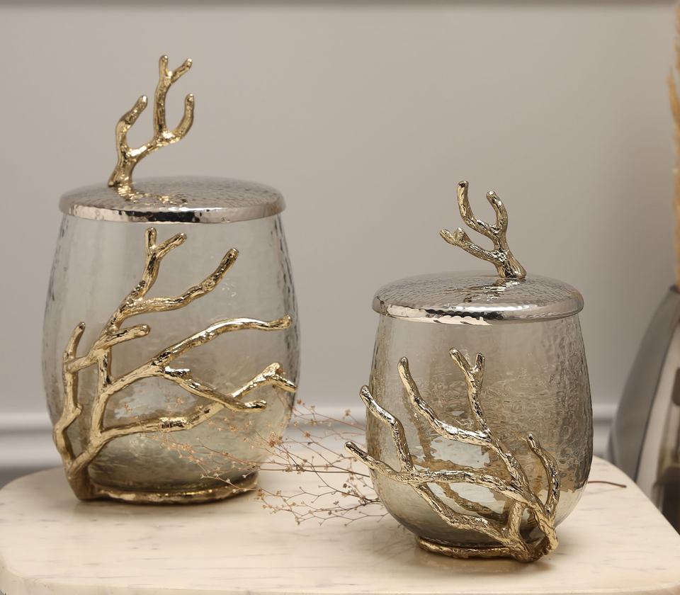 ขวดโลหะและที่เก็บแก้วฝาปิดดอกบัวสีทองหรูหราสำหรับตกแต่งบ้านที่หรูหราเน้นการตกแต่ง