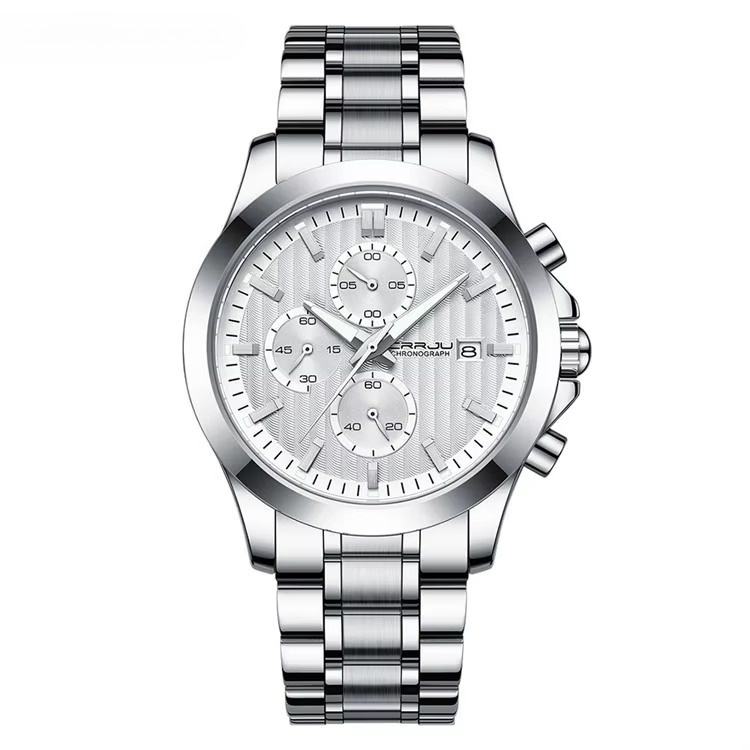 นาฬิกาโครโนกราฟผู้ชายสุดหรู สายสแตนเลสคลาสสิก เข็มเรืองแสง HD กันน้ำ 3BAR นาฬิกาควอตซ์สไตล์ลำลองสำหรับธุรกิจ
