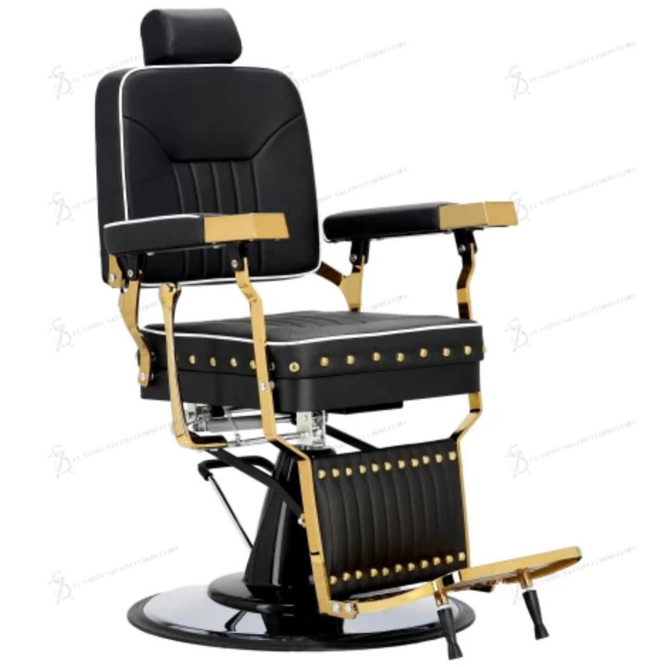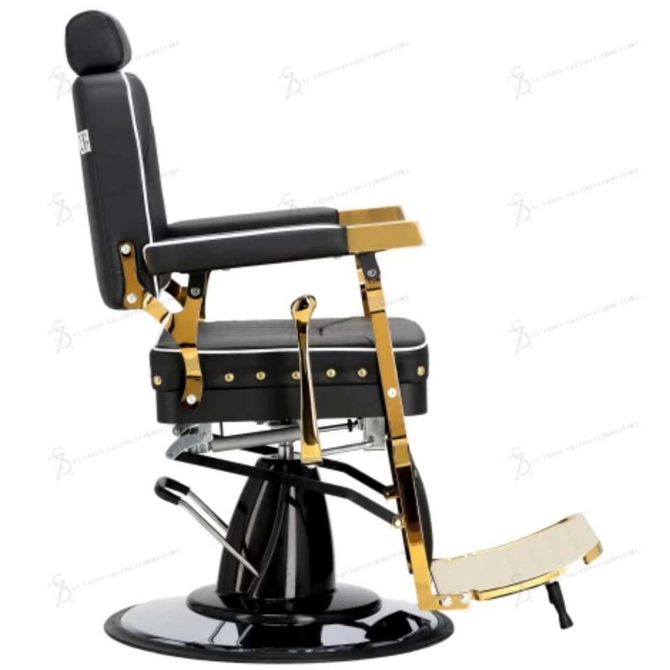 เก้าอี้ตัดผมชายสุดหรูหรา รุ่นฟิลิปโป้ โกลด์ แบล็ค คลาสสิค วินเทจ เก้าอี้ตัดผมบาร์เบอร์สุดหรูหรา สไตล์โบราณ