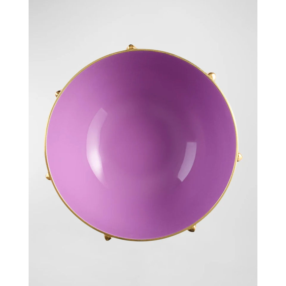 ชามตกแต่งโลหะสีทองหรูหราพร้อมการตกแต่งภายในสีม่วงสำหรับชิ้นกลางโต๊ะที่ทันสมัยและของขวัญตกแต่งบ้านที่หรูหรา