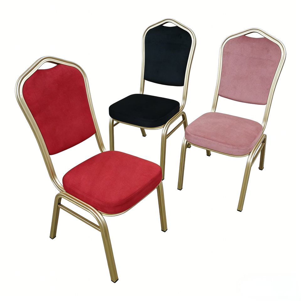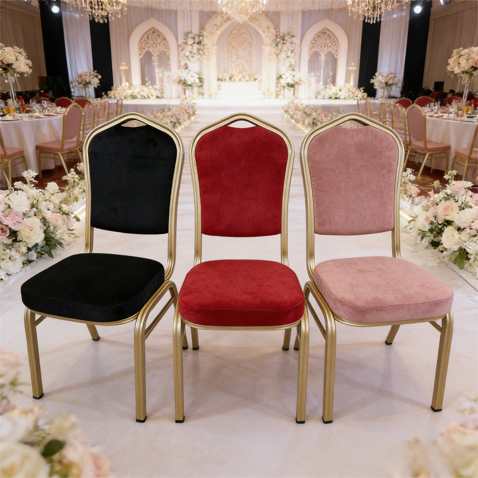 เก้าอี้จัดเลี้ยงโครงโลหะสีทองหรูหรา ทำจากสแตนเลส เหมาะสำหรับงานโรงแรม งานแต่งงาน อพาร์ทเมนท์ และสวนสาธารณะ พร้อมผ้าคลุมที่ถอดออกได้