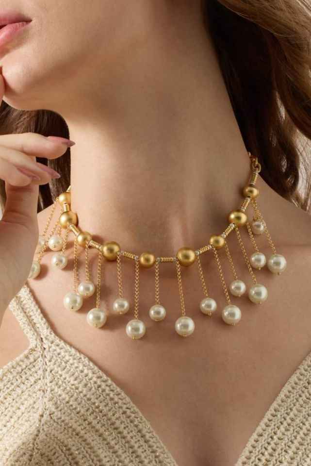 ชื่อหรือคำ:Gold & Pearl Drop Statement Necklace