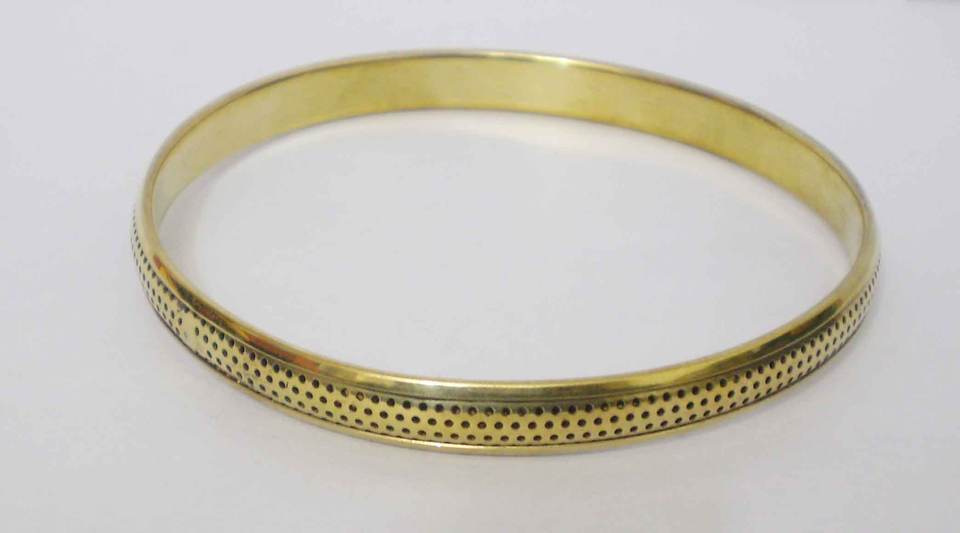 กำไลทองแดงชุบทองหรูหราสำหรับผู้หญิง ดีไซน์ลายจุดเจาะรูที่เป็นเอกลักษณ์ กำไลโลหะ งานฝีมือโลหะที่ทันสมัยและสง่างาม