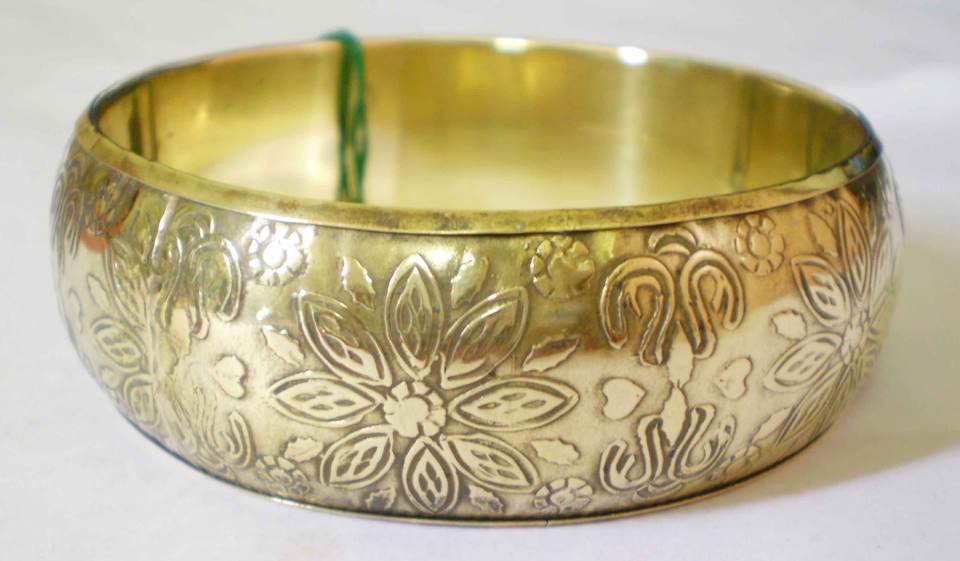 กำไลทองแดงชุบทองหรูหรา พร้อมลวดลายดอกไม้แมนดาลาแบบนูน ดีไซน์สง่างาม ทำด้วยมือ สไตล์โบราณ กำไลทองเหลืองสำหรับงานโลหะ
