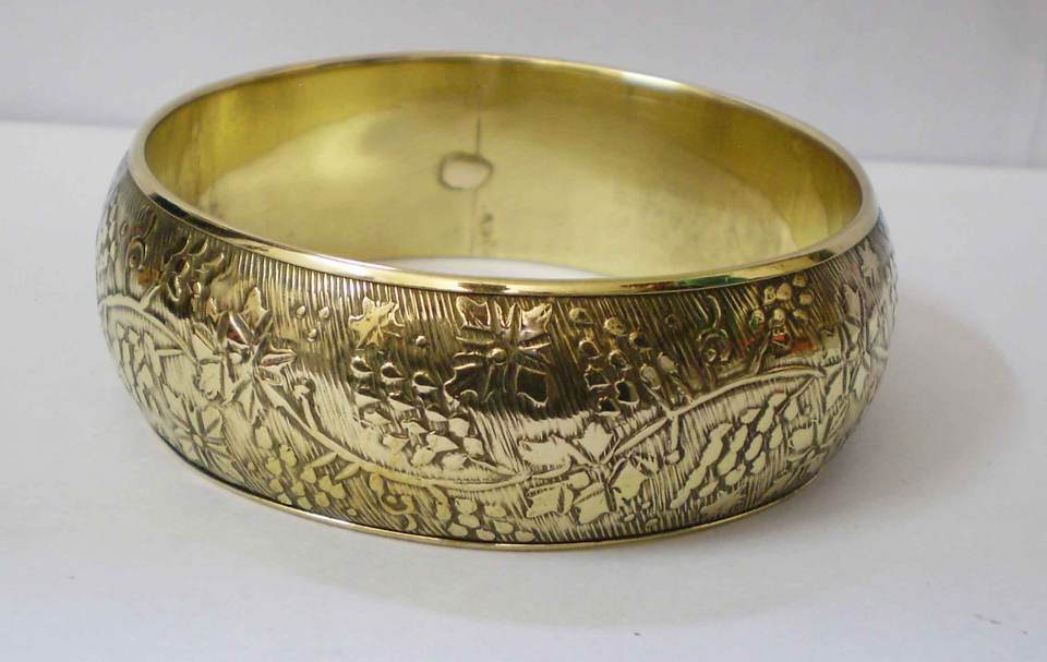 กำไลทองแดงชุบทองหรูหรา พร้อมลวดลายดอกไม้สลักมือที่ละเอียดอ่อน แรงบันดาลใจจากธรรมชาติ งานฝีมือโลหะสไตล์โบราณที่สง่างาม