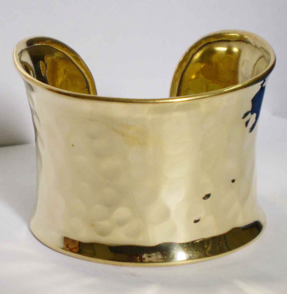 กำไลข้อมือทองแดงชุบทองหรูหราสำหรับผู้หญิง ดีไซน์ลายตอกแบบไม่ซ้ำใคร ขอบกว้างทรงบาน สร้อยข้อมือโลหะแข็งแรง สง่างาม