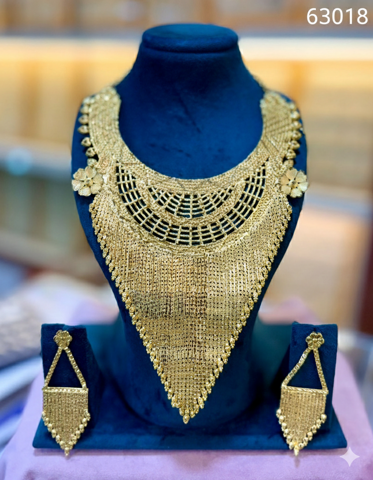 ชุดสร้อยคอพร้อมจี้พู่ห้อย ดีไซน์ลายฉลุตาข่ายชุบทองหรูหรา เครื่องประดับแฟชั่นเจ้าสาวแบบหนัก รุ่น 63012