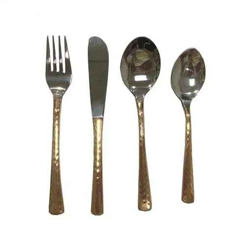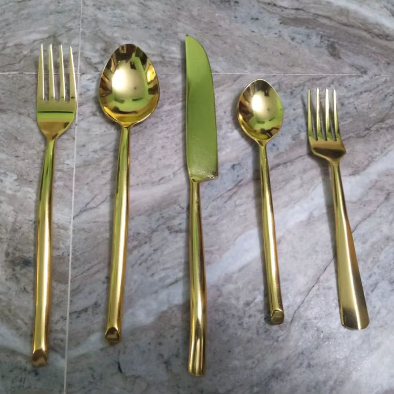 ชุดช้อนส้อมโลหะชุบทองหรูหรา ดีไซน์ทันสมัย ด้ามจับสเตนเลสสตีล ขัดเงา ทนทาน เหมาะสำหรับงานแต่งงาน