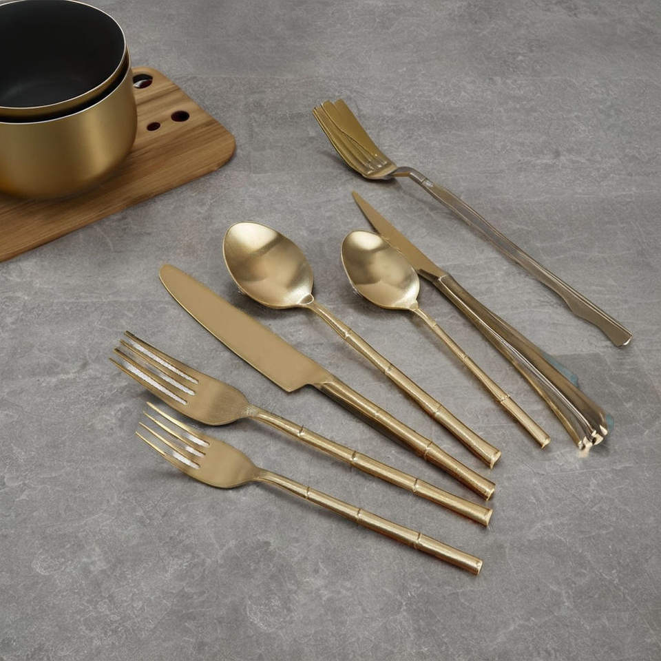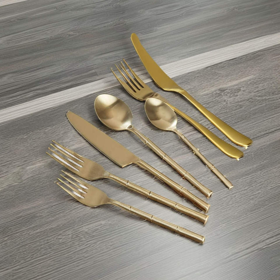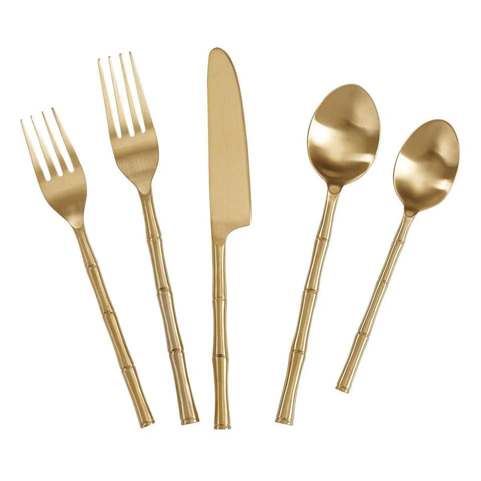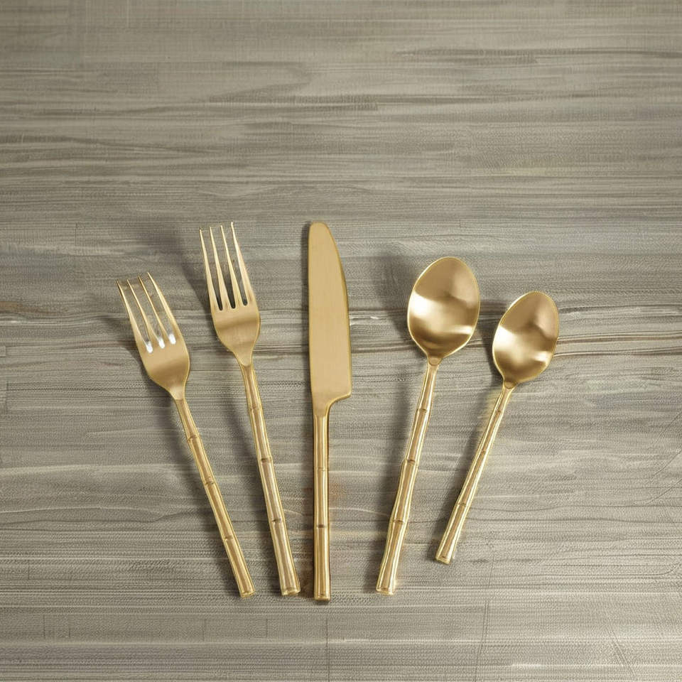 ชุดช้อนส้อมสแตนเลสสตีล 18-10 5 ชิ้น ด้ามจับโลหะชุบทองหรูหรา เป็นมิตรกับสิ่งแวดล้อม