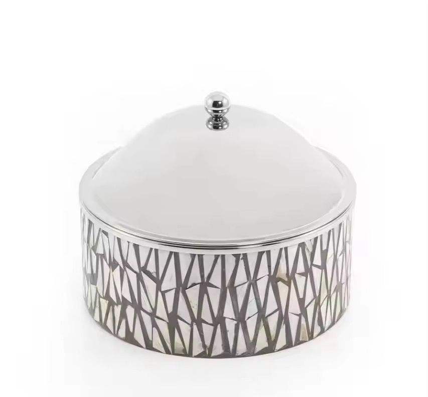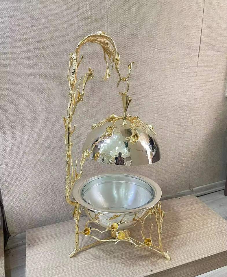 หม้อตุ๋นสแตนเลสชุบทองหรูหรา พร้อมชามแก้ว ภาชนะเสิร์ฟตกแต่งพร้อมฝาปิด สำหรับโต๊ะอาหาร