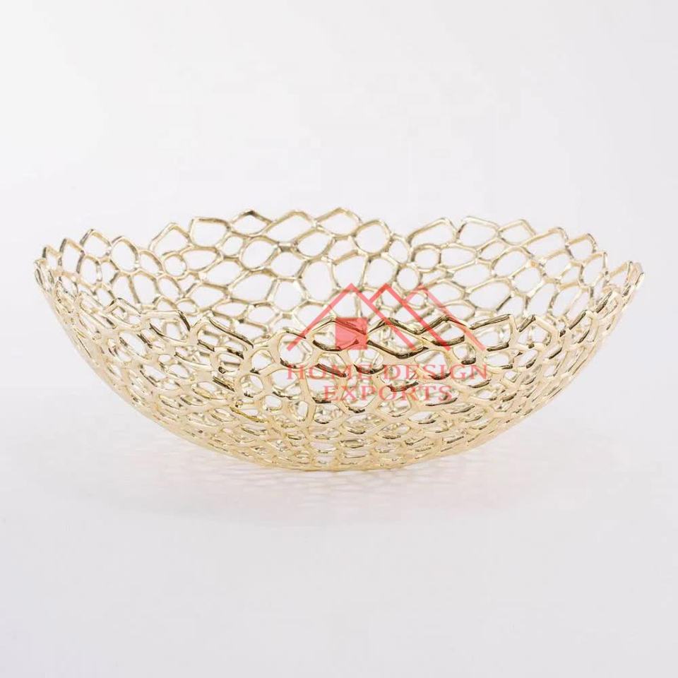 หรูหราชุบทองโลหะตกแต่งชามเสิร์ฟพรีเมี่ยมที่มีคุณภาพผลไม้และผักชามตกแต่งตารางถาดเสิร์ฟใหม่