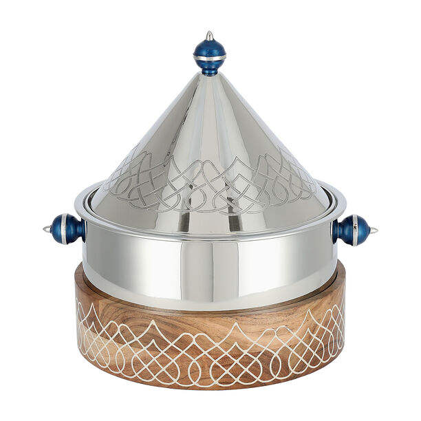 ที่อุ่นอาหารจานร้อนเคลือบเงาสีทองหรูหรามีดีไซน์ลายนูนและมือจับหัวสิงโต