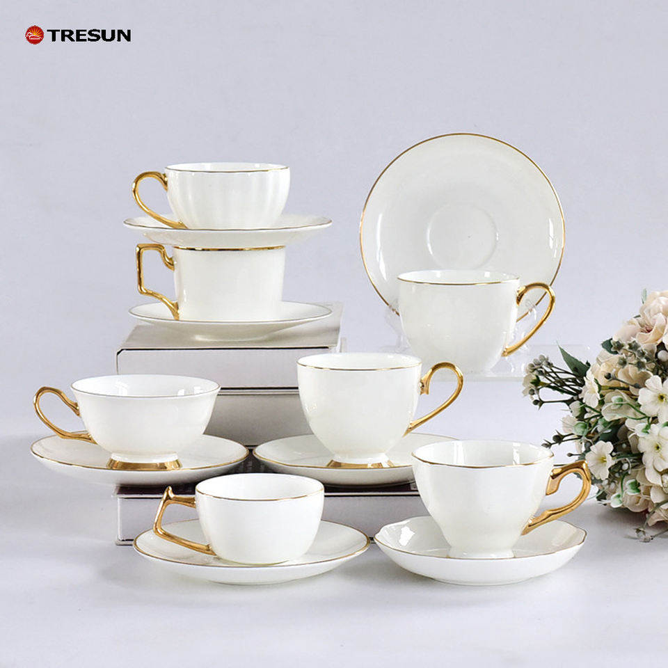 ถ้วยชาและจานรองพอร์ซเลนขอบทองสุดหรูสำหรับชายามบ่ายและของตกแต่งบ้านที่หรูหรา