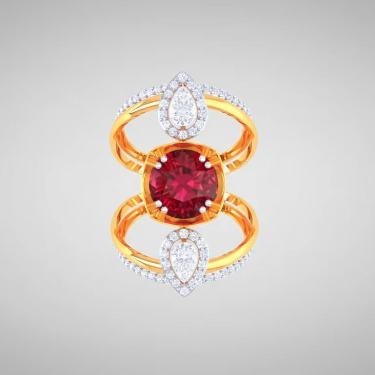 แหวนค็อกเทลเพชรพลอยทับทิมสีแดงทองหรูหราสำหรับผู้หญิง - เครื่องประดับแฟชั่น ของขวัญวันครบรอบ