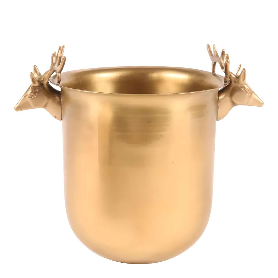 ถังแช่ไวน์ทรงหัวกวางทองหรูหราพร้อมหูจับรูปกวาง ถังแช่แชมเปญขนาดใหญ่สำหรับตกแต่งงานปาร์ตี้คริสต์มาสที่บาร์