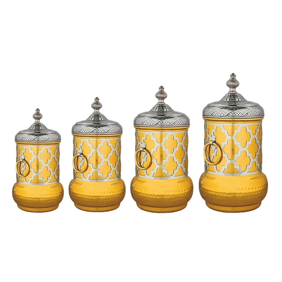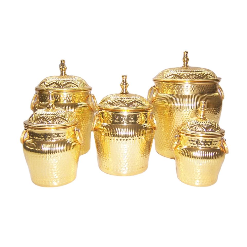 ชุดกระป๋องสแตนเลสสตีลสีทองหรูหรา แบบตอกลาย สำหรับเก็บอาหารในครัว พร้อมฝาปิดกันฝุ่น