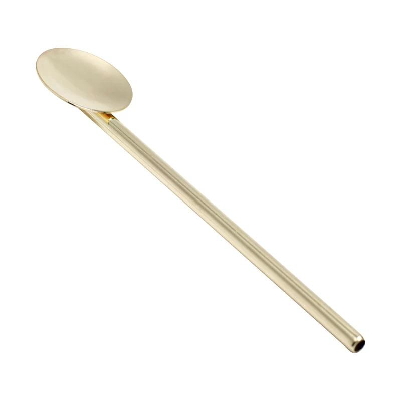 ช้อนคนค็อกเทลสแตนเลสสตีลสีทองหรูหรา ผิวเรียบ ทนทาน ไม่เป็นสนิม อุปกรณ์บาร์สุดหรูสำหรับเครื่องดื่มและของขวัญ
