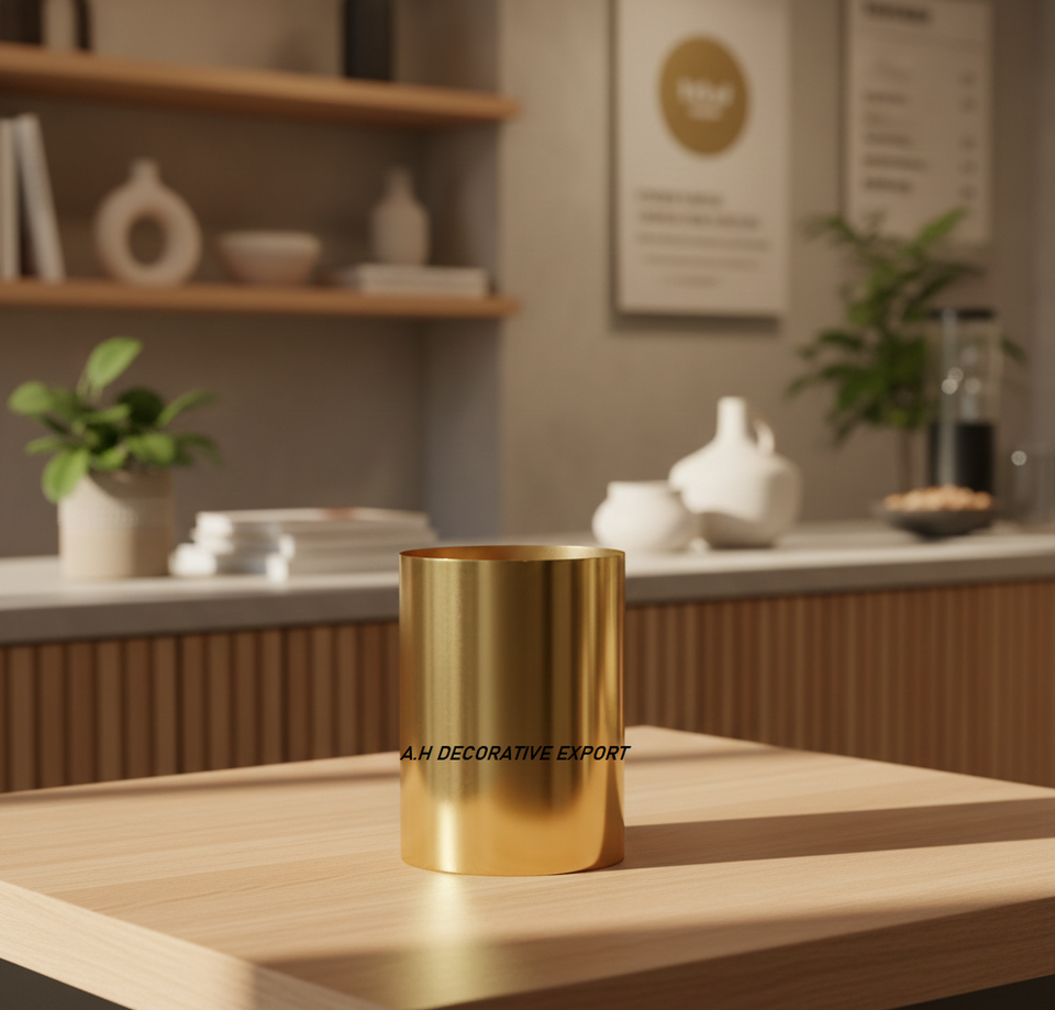แจกันทรงกระบอกสแตนเลสสีทองหรูหรา | แจกันดอกไม้ขัดเงาทำมือ | โรงแรมโฮมโฮลี่บี้งานแต่งงานที่ทันสมัยและเป็นมิตรกับสิ่งแวดล้อม