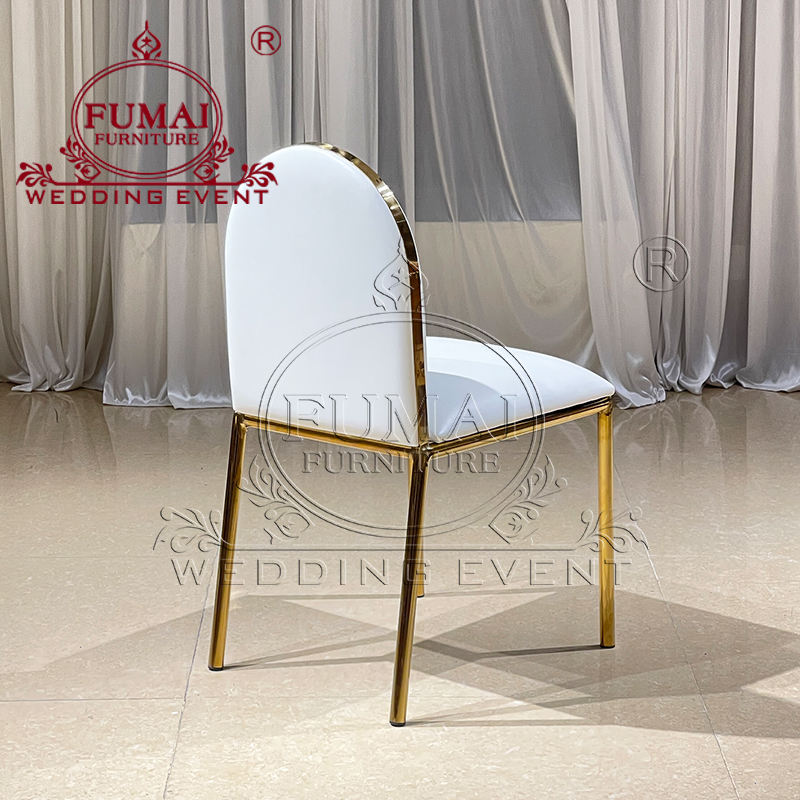 เก้าอี้สแตนเลสสีทองสุดหรูห้องรับประทานอาหารของโรงแรมเก้าอี้แต่งงานสำหรับกิจกรรมวิลล่าห้องนั่งเล่นกลางแจ้ง-เฟอร์นิเจอร์เชิงพาณิชย์ที่ทนทาน