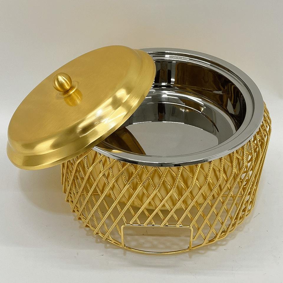 หม้ออุ่นอาหารสแตนเลสสตีลสุดหรูทันสมัย พร้อมตะกร้าลวดโลหะสำหรับเสิร์ฟบุฟเฟ่ต์ ชุดหม้อตุ๋นอุ่นอาหารสำหรับงานแต่งงาน