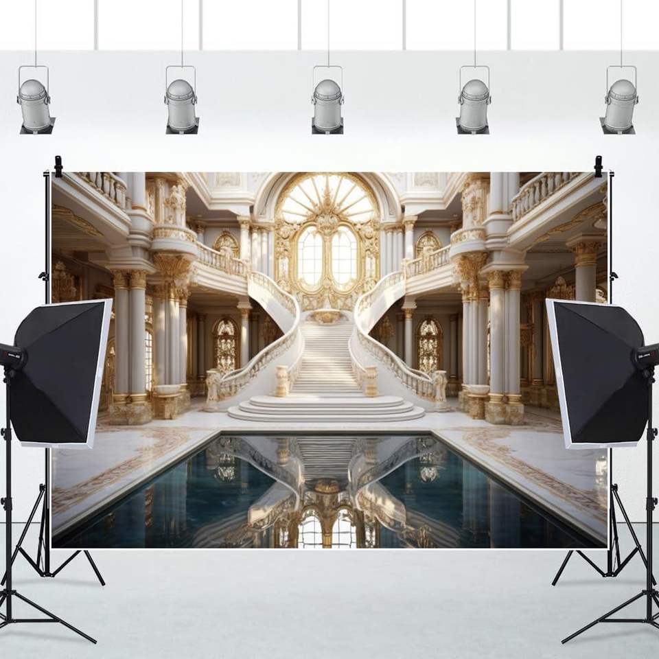 ฉากหลังบันไดทองหรูหราสำหรับพิธีแต่งงาน งานเลี้ยงฉลองเจ้าสาว ฉากหลังงานศิลปะสำหรับสาวๆ ตกแต่งงาน ผลิตในจีน