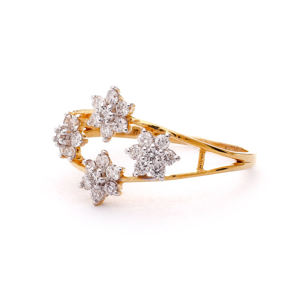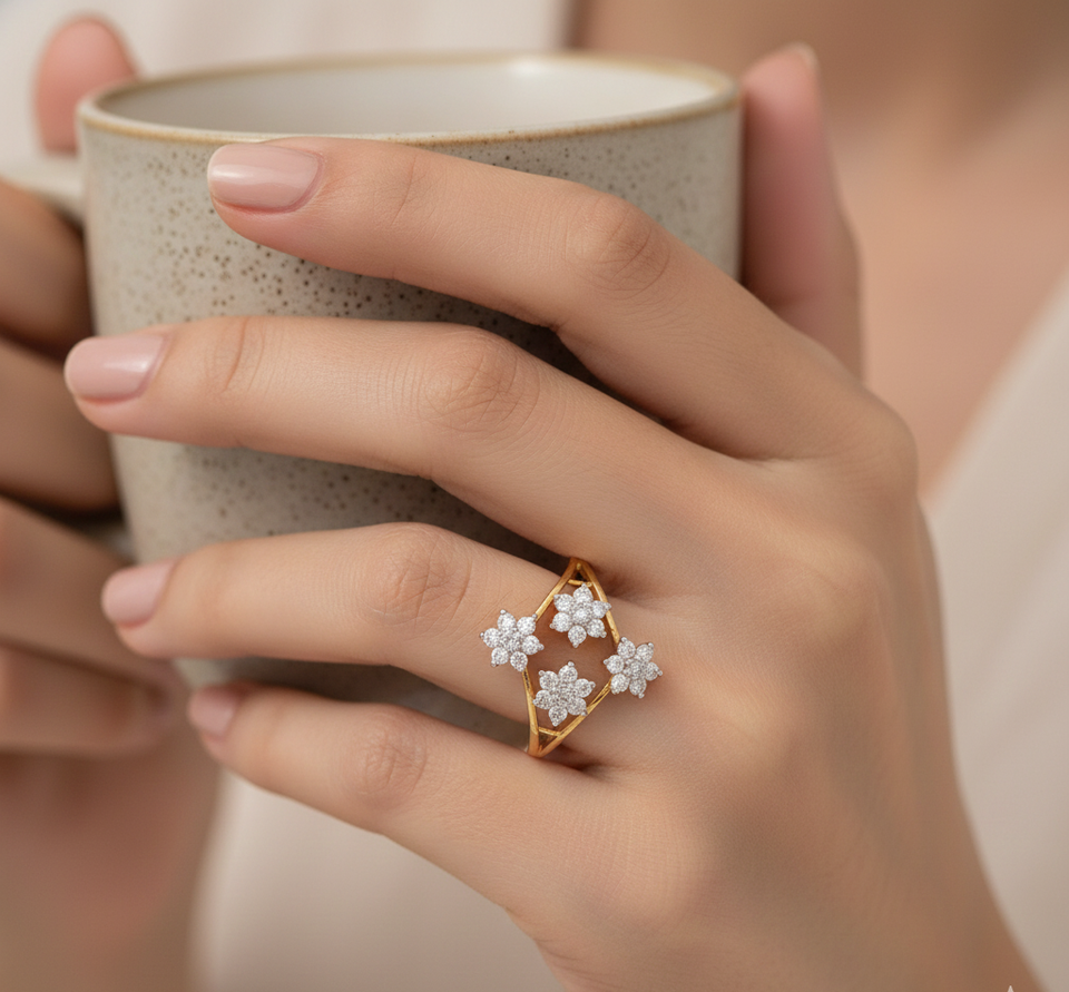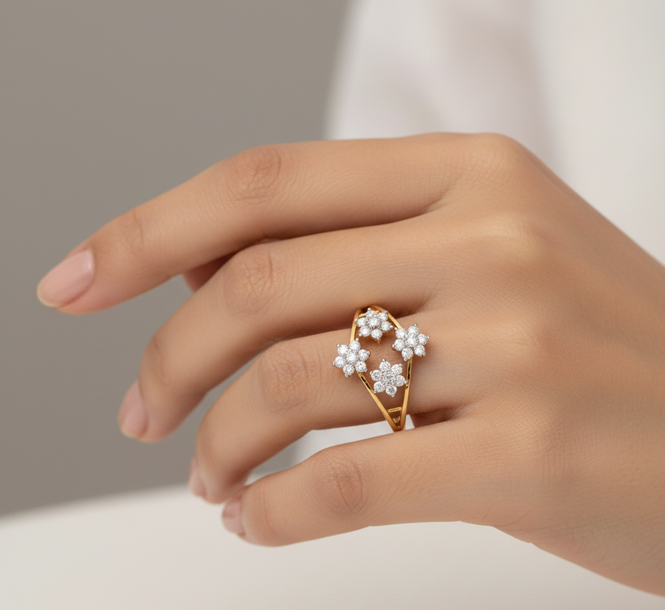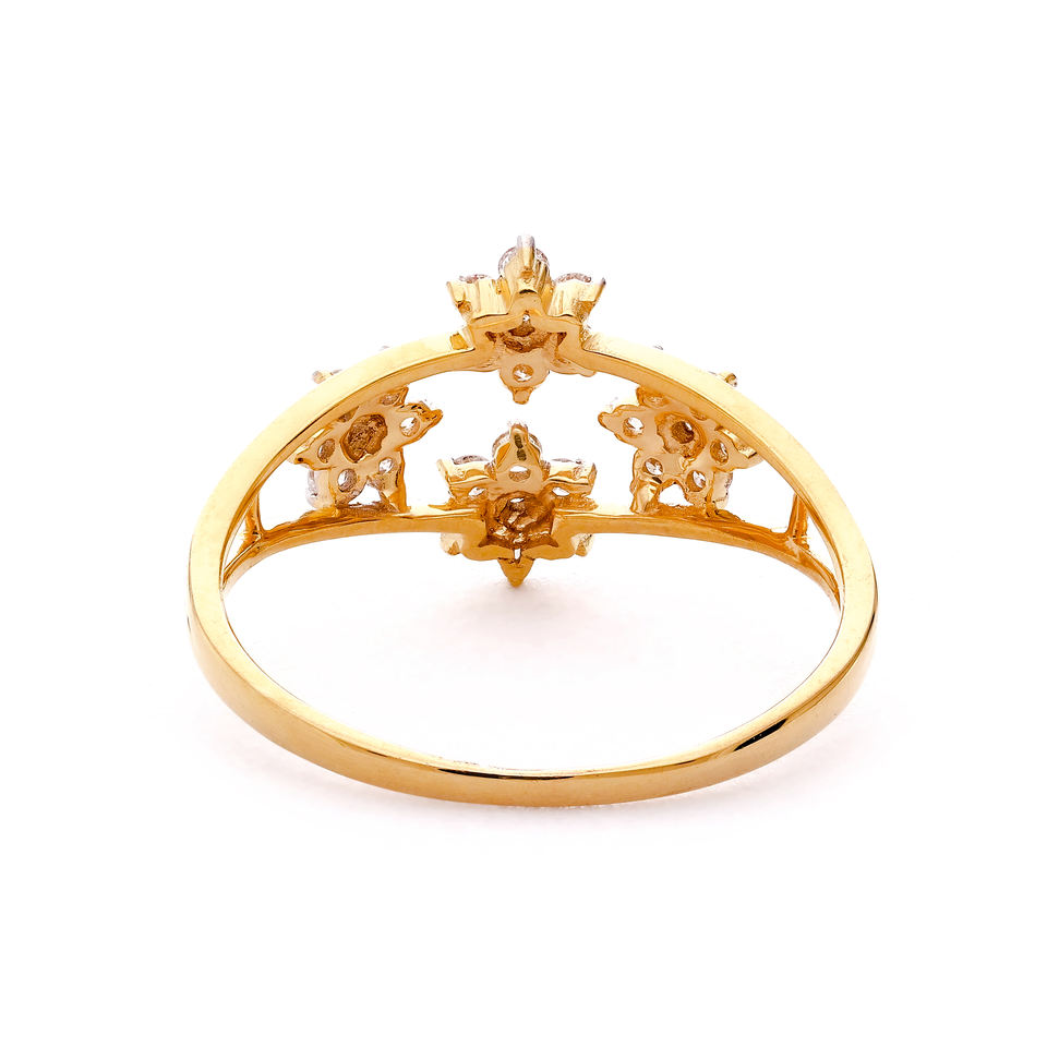 แหวนเพชรทรงดอกไม้หรูหราประดับดาวทอง แหวนทรงดอกไม้เจียระไนแบบบริลเลียนท์สำหรับผู้หญิง เครื่องประดับสำหรับงานหมั้นและวันครบรอบ