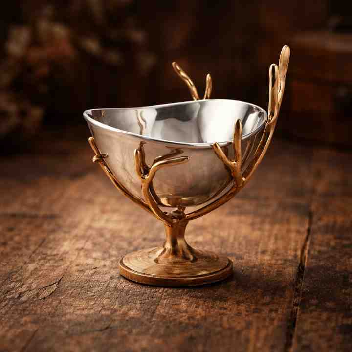 ชามโลหะรูปกิ่งไม้สีทองหรูหรา ชามใส่ผลไม้ตกแต่งบ้าน ของตกแต่งกลางโต๊ะ